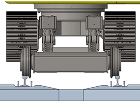 整機上道時鋼軌輪對位,且安裝便于更換的橡膠履帶板,防止對線路的道釘等造成損傷。